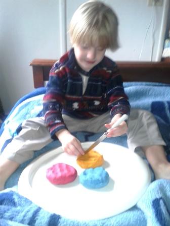 'n Tyd gelede het dit my gehelp om Joshua kleure te leer. Hy leer kinesties - veral met fisiese aanraking. Simeon, as visuele leerder, het reeds op 2 jaar 3 maande sy kleure geken (ook geleer deur speelklei te meng), maar Joshua kon dit net nie "sien" nie. Hierdie keer het dit egter net gekliek en hy het nie weer daarmee gesukkel nie.